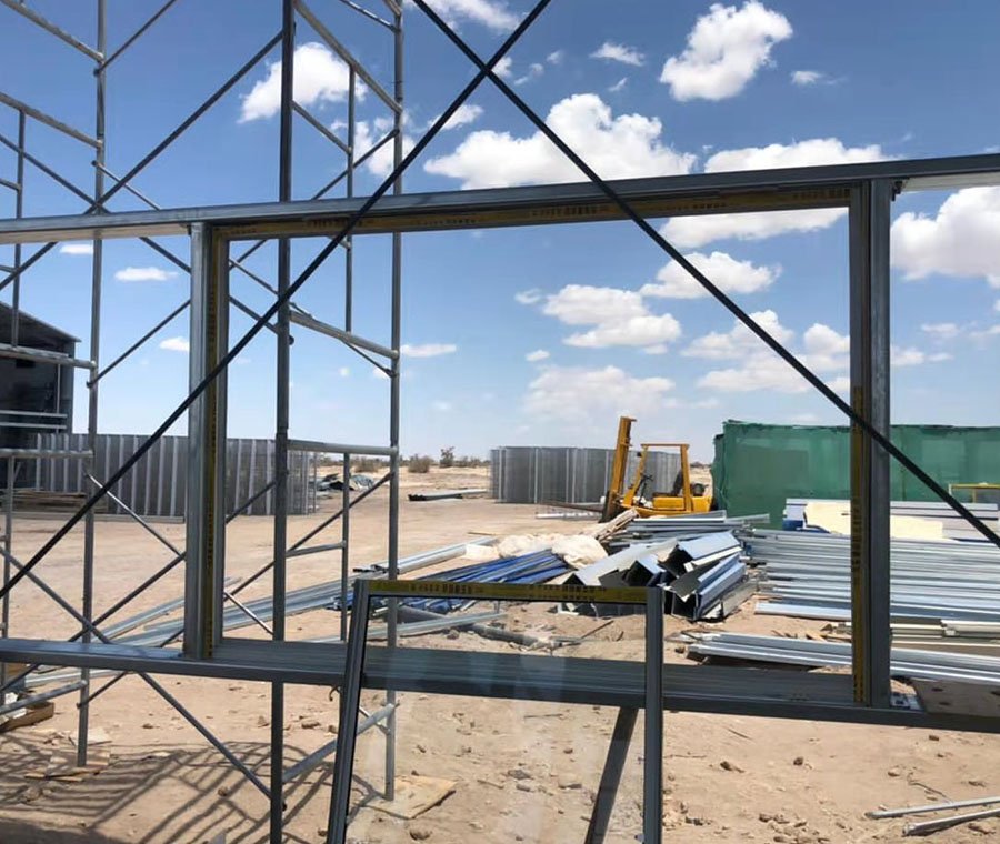 On a desert beach, a 30×20×6m steel structure warehouse grows from a steel skeleton. Steel frames are precisely assembled to form the outline. Then, doors, windows, and enclosure materials are successively put in place, and workers complete the construction of walls and roofs with the help of scaffolding. Finally, internal automated equipment is installed and debugged, and a modern warehouse is completed on the desert beach, realizing the transformation from an empty frame to a functional storage space.