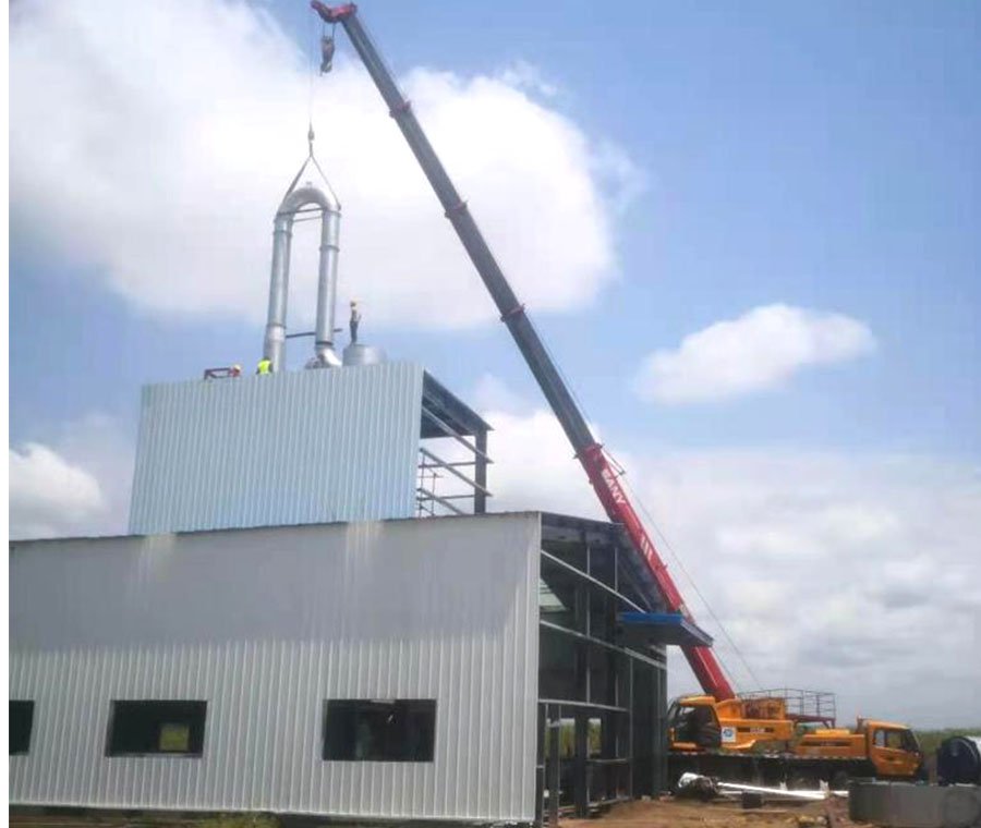 The installation of the complex steel-structured cassava flour workshop in the Democratic Republic of the Congo unfolds with precision and efficiency.