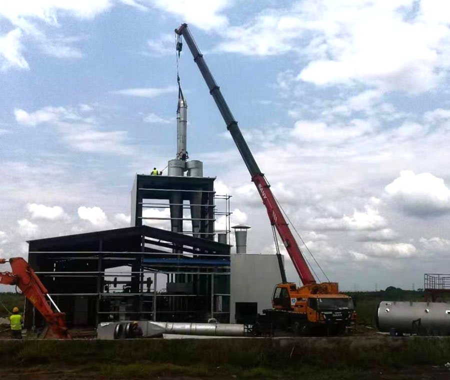 As the project progresses, intricate steel structures, including tall chimneys and piping systems, are hoisted into place by cranes, with workers meticulously securing each part. The workshop’s steel shell gradually takes shape, combining robust structural elements with functional processing equipment.