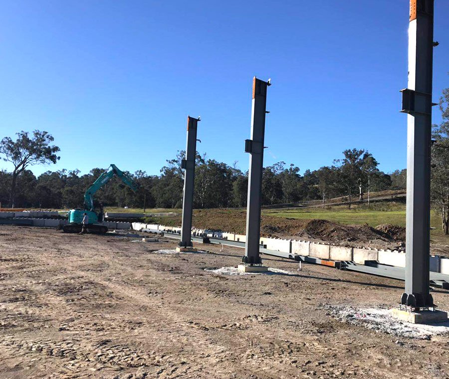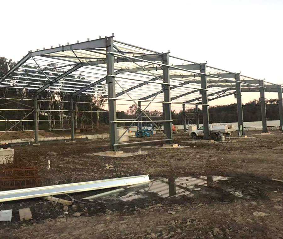 80m*25m*12m Australian Steel Structure Project Under Clear Skies: Steel Column Erection Foundations & Industrial Building Framework Formation